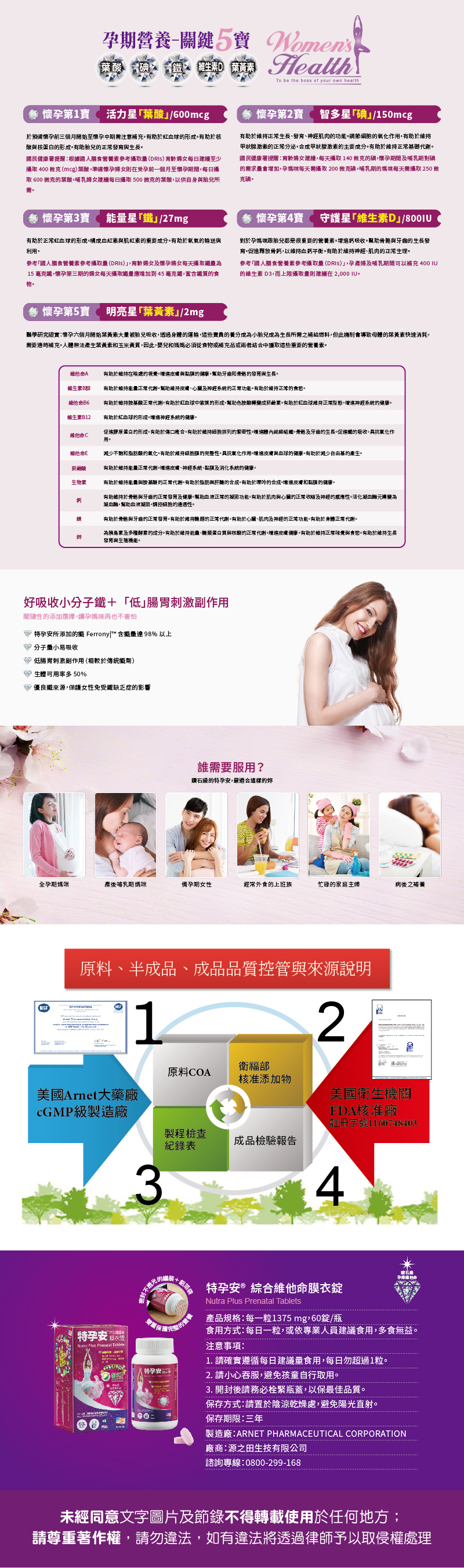 2. 本品依據國民健康署建議: 預備或正在懷孕當媽媽的婦女要注意葉酸、鐵、碘及維
