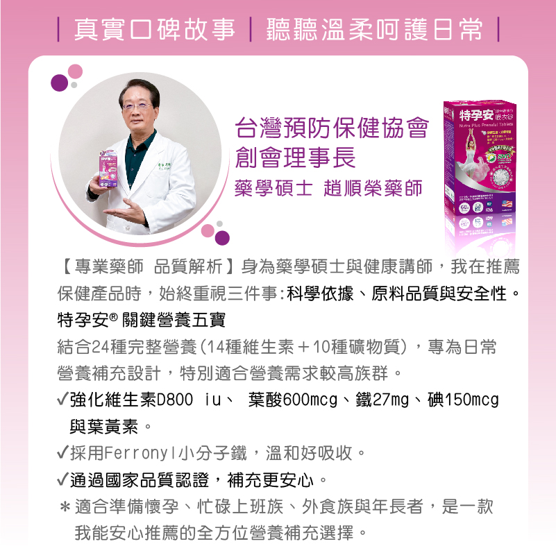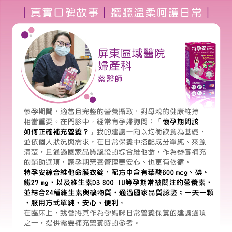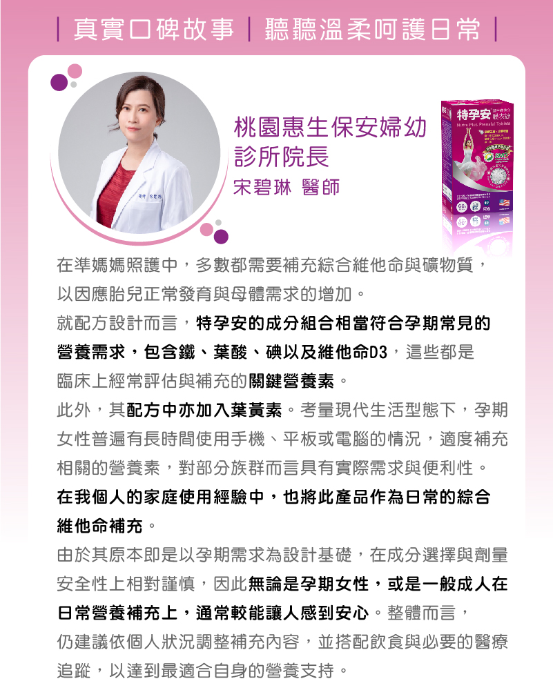 特孕安® 是我能安心推薦的全方位營養補充選擇。