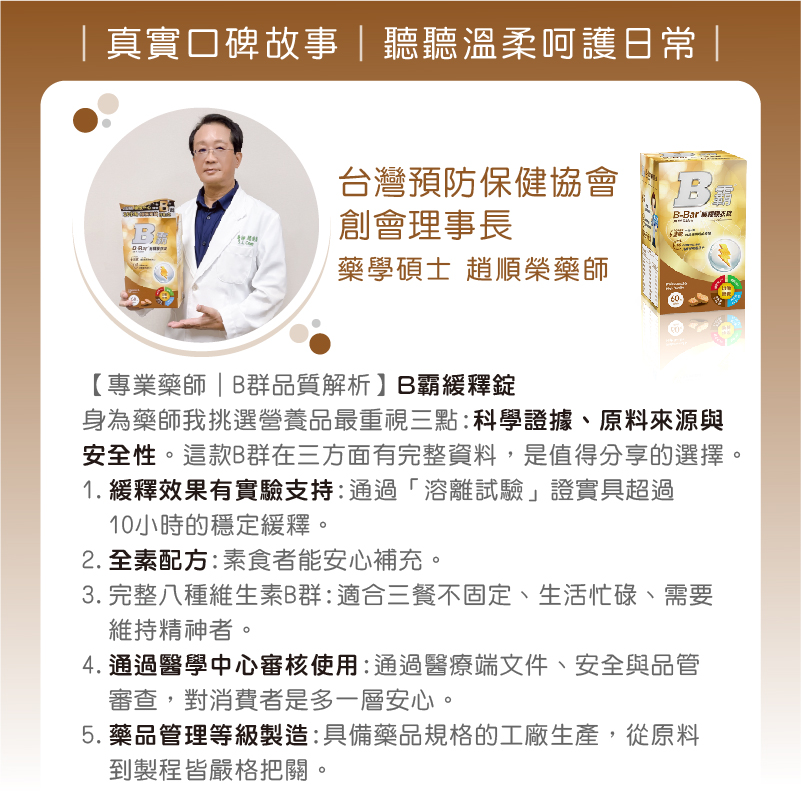 B霸緩釋膜衣錠,每日一錠完整的高規格B群維生素,每日10小時緩釋錠,在每天忙碌的生活中,