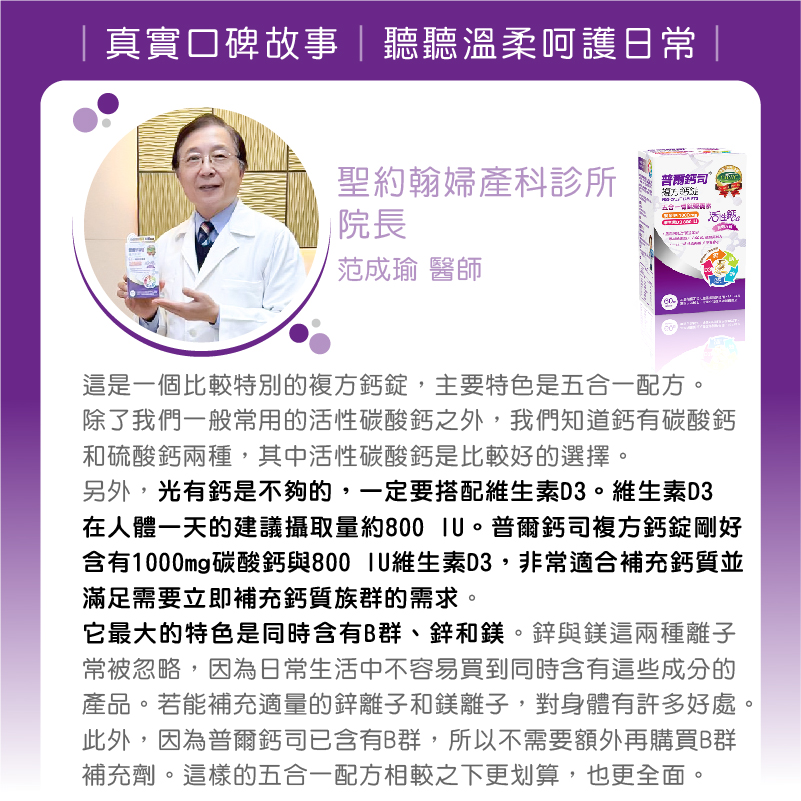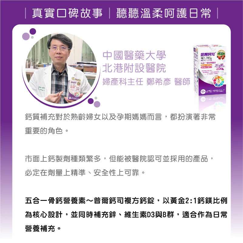 我在婦產科臨床工作35年了,對「普爾鈣司」複方鈣片的應用也有20幾年了,每天一顆,