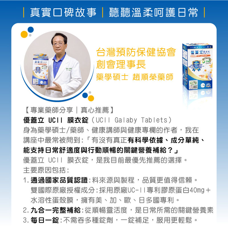 這款 優蓋立 UCII 膜衣錠,是我目前會優先推薦的關鍵營養補給。原因如下